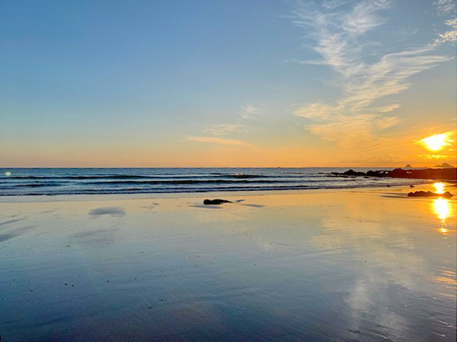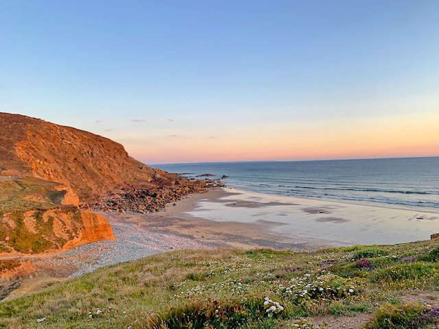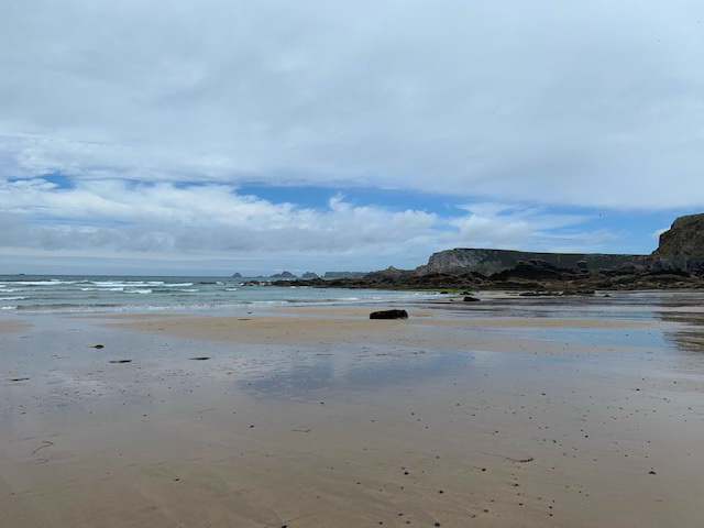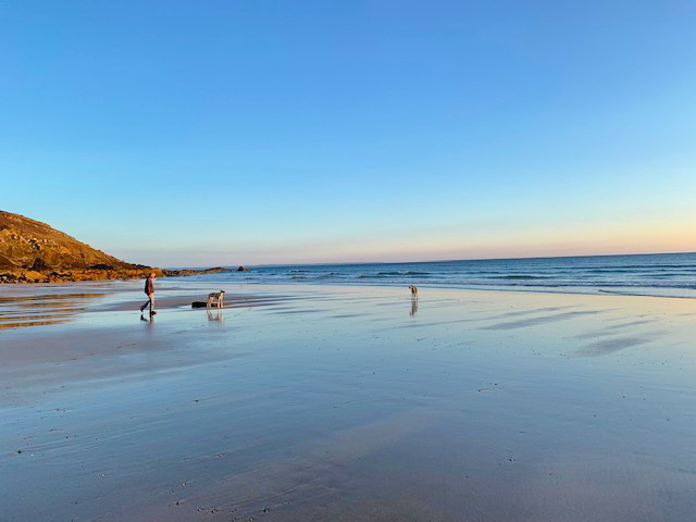 Der Hausstrand von Ty Ahimsa ist 10 Gehminuten vom Haus entfernt. Bei Ebbe enthüllt sich der Sandstrand.